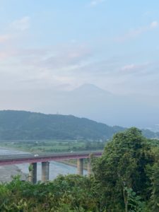 薄くなった雲の間から、霞がかかった富士山でしたが、見えました。